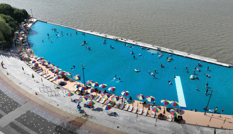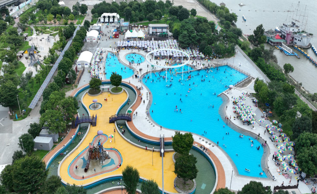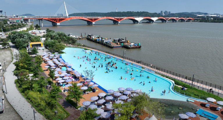 한강을 가장 가까이서 조망할 수 있는 인피니티풀 형태로 조성, 5~8세 어린이를 동반한 가족 물놀이장