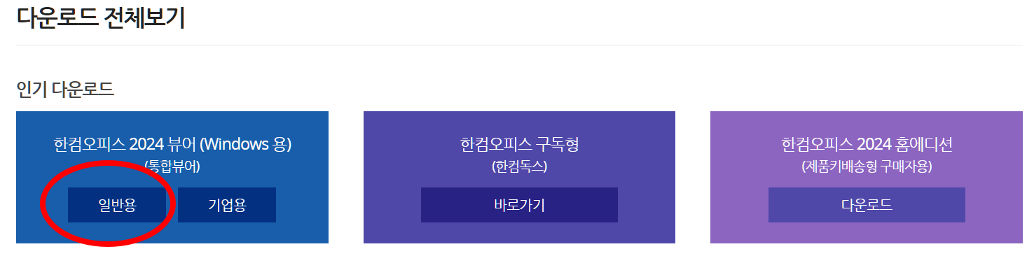 한글 뷰어 링크를 클릭하여 다운로드 페이지로 이동 후 운영 체제(예: Windows, Mac 등)와 호환되는 버전을 선택하세요.
